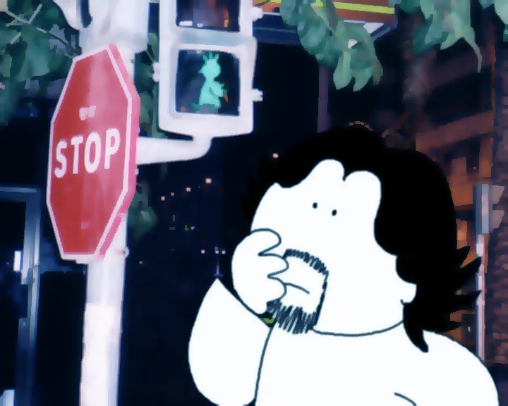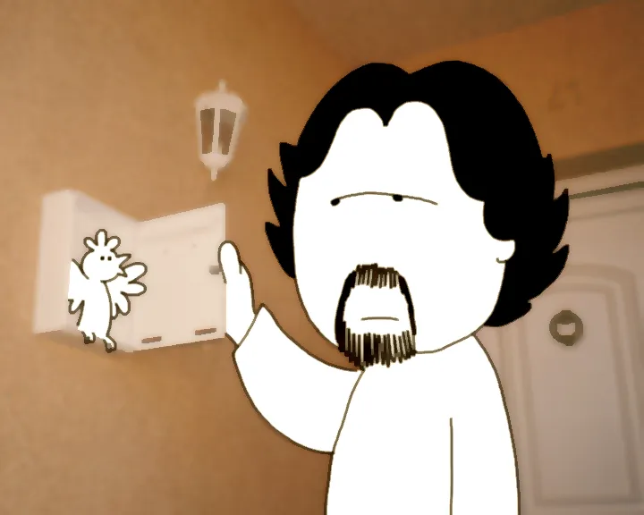 En la primera secció aparec jo mateix interpretant a un autor al qual li encarreguen realitzar un audiovisual, combinant imatges reals amb dibuixos. La segona secció mostra el propi audiovisual, ja completament realitzat en animació.