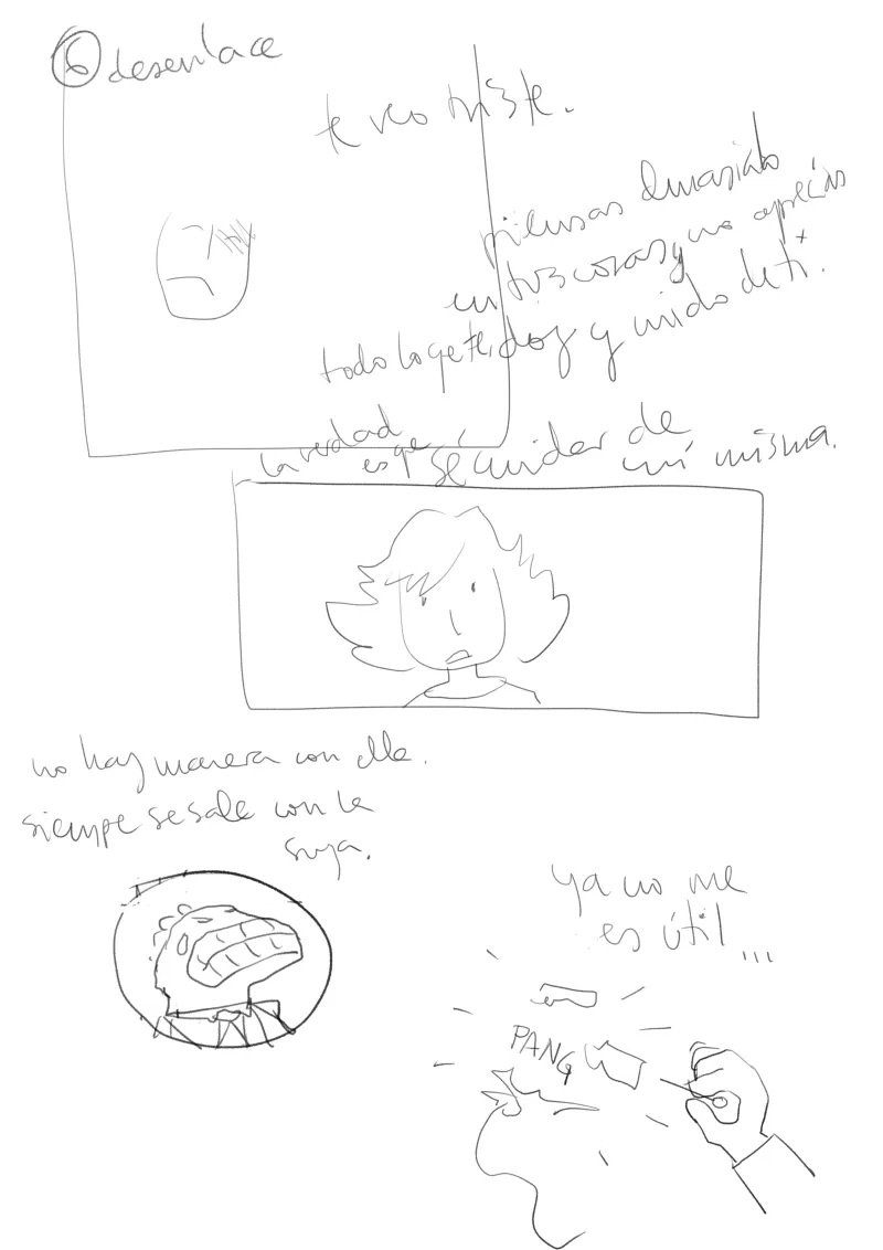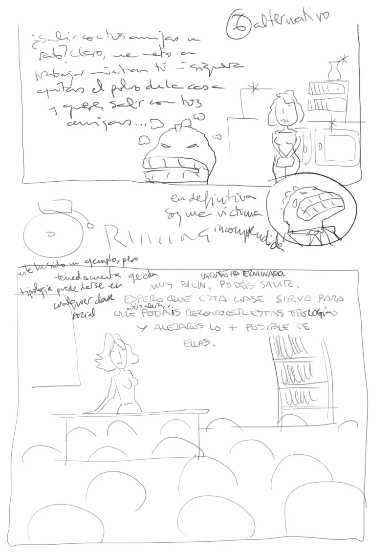 Este còmic el vaig realitzar per a la secció «Per la igualtat i contra la violència de gènere» d’una nova edició del Concurs Nacional de Còmics Ciutat de Dos Hermanas. No va obtindre cap reconeixement, cosa que podria atribuir-se al seu final deliberadament incòmode.