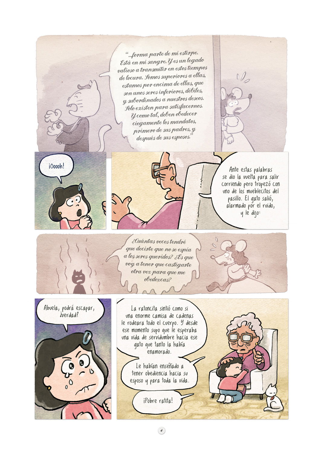 Crec que és la primera vegada que guanye un premi en un concurs. Este còmic va ser el guanyador en la secció «Por la igualdad y contra la violencia de género» del XXII Concurso Nacional de Cómics Ciudad de Dos Hermanas. La història s’inspira en La rateta presumida, però inventa una segona part amb l’objectiu de denunciar els abusos i mals tractes que de vegades es donen en algunes parelles. En el còmic no apareix el relat original de La rateta presumida; es parteix directament de una continuació inventada, mostrant com xicotetes decisions i actituds poden afectar profundament la vida de qui pateix violència emocional o psicològica. Combina humor, crítica social i sensibilitat per transmetre un missatge seriós de manera impactant i accessible.