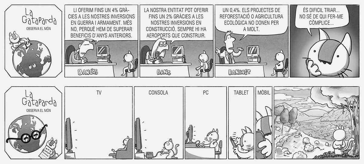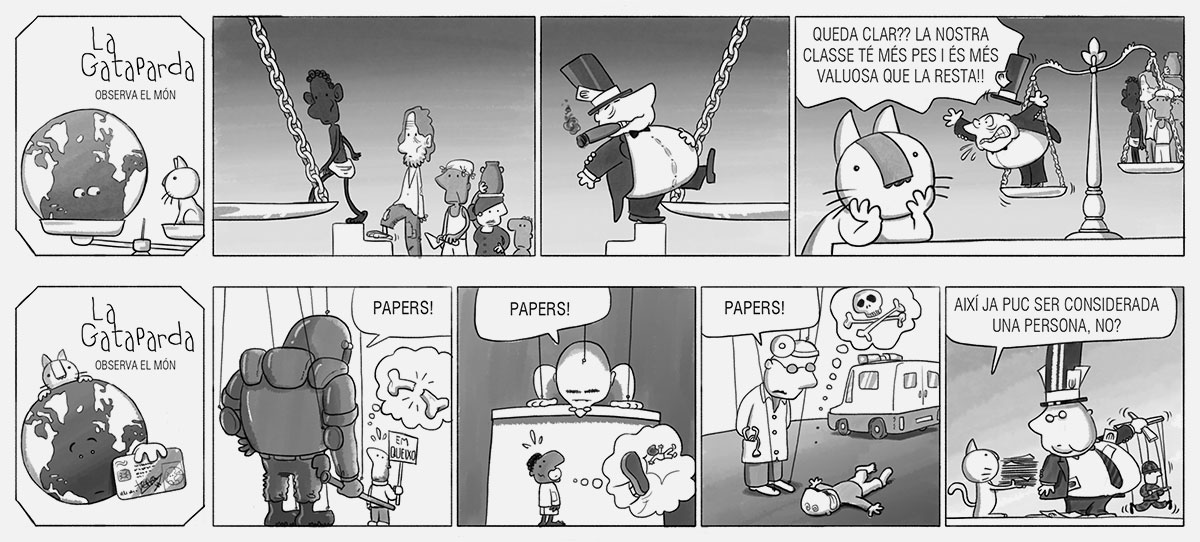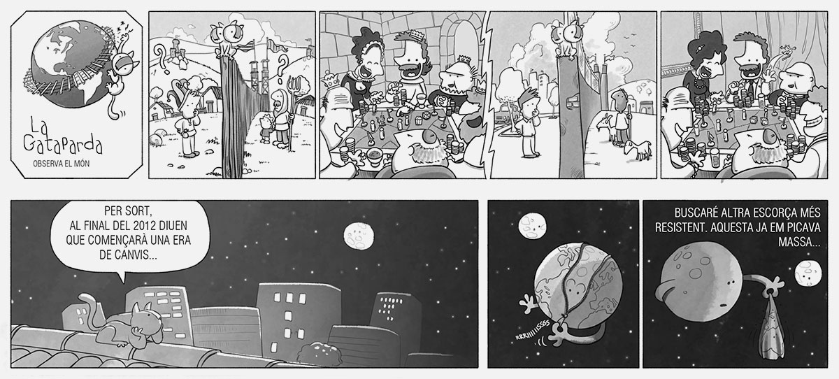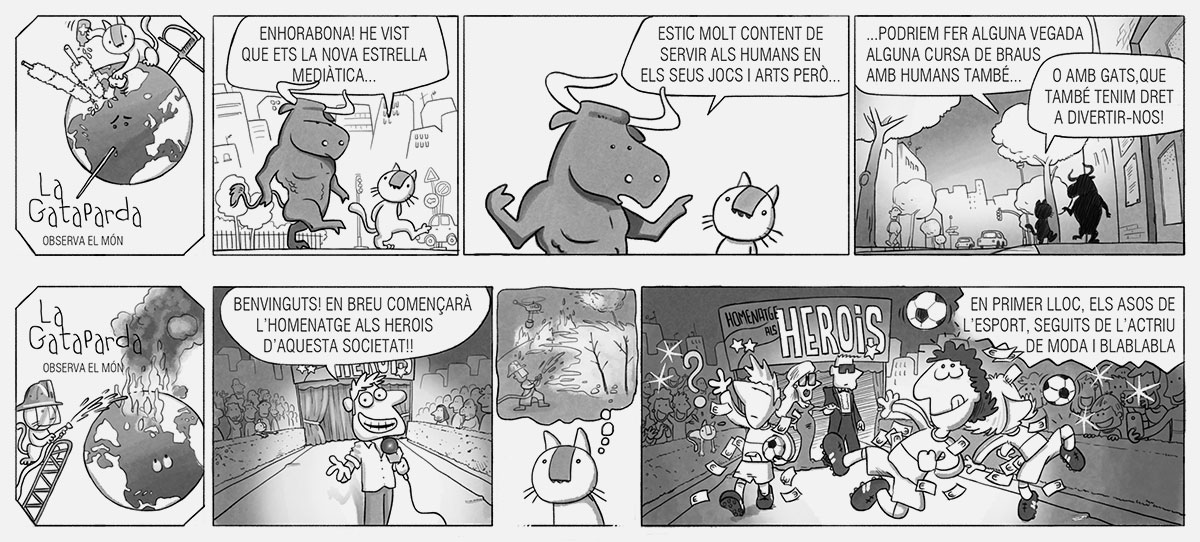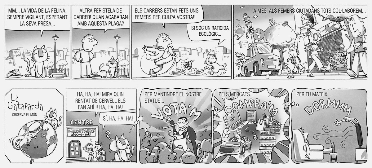 Després d’haver participat en la primera edició, un any més tard vaig participar en la segona edició del Premi Internacional de Còmic Ciutat de Badalona-Caixa Laietana de Tires de Còmic, en la qual també vaig quedar finaliste. En esta ocasió, el nexe d’unió de les tires és una gata que observa, amb mirada atenta i crítica, els absurds i contradiccions de la societat que ens envolta. Cada vinyeta reflectix situacions quotidianes i comportaments humans des del seu particular perspectiva, combinant humor i ironia per a posar en relleu els xicotets i grans contrasentits del nostre entorn.