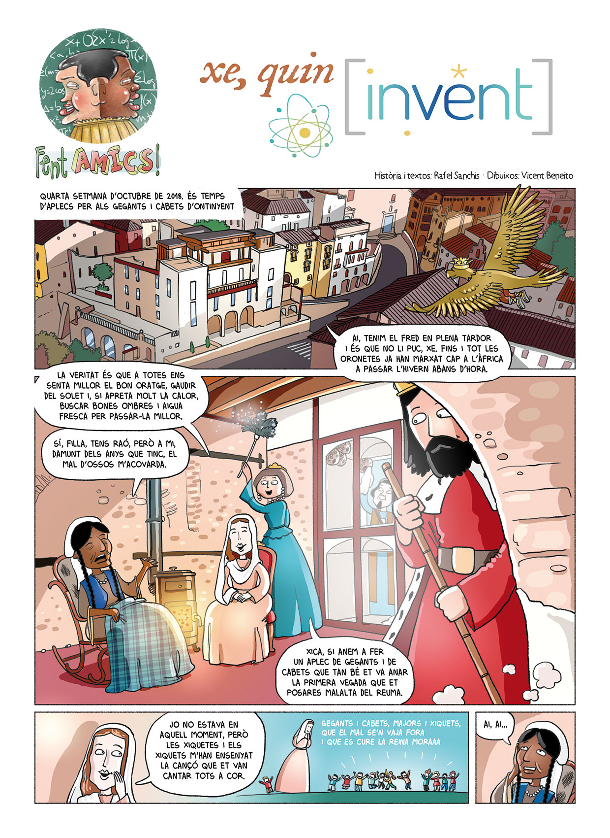 Tercer lliurament del còmic Fent amics, amb el títol Xe quin invent. Esta nova narració ens acosta a un invent cabeter que, alhora, és el detonant d’una sorprenent aventura per a alguns dels nostres amics i l’arribada de nous companys.