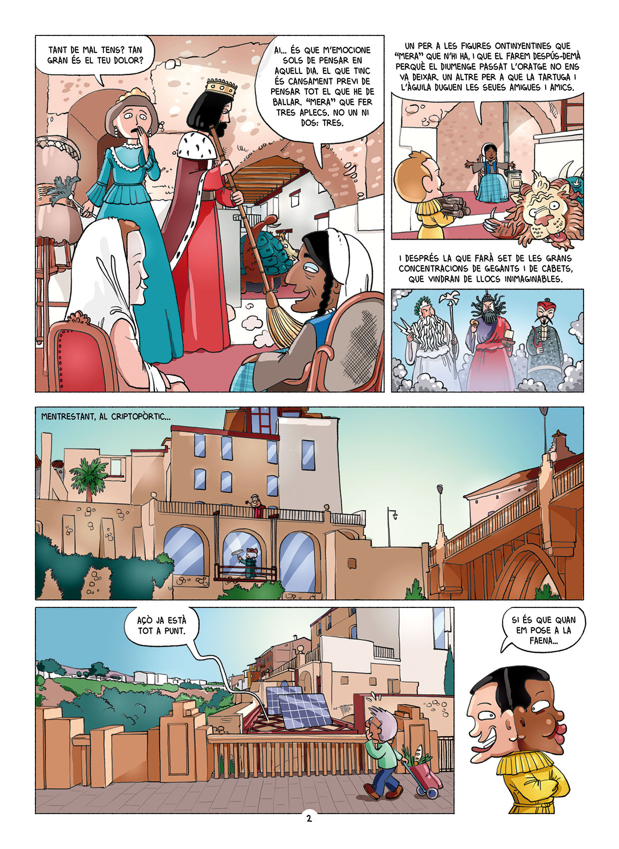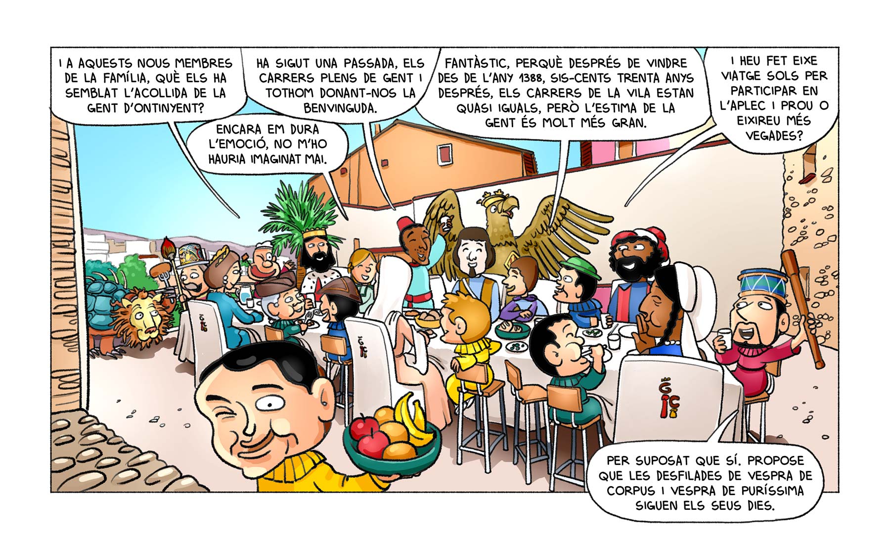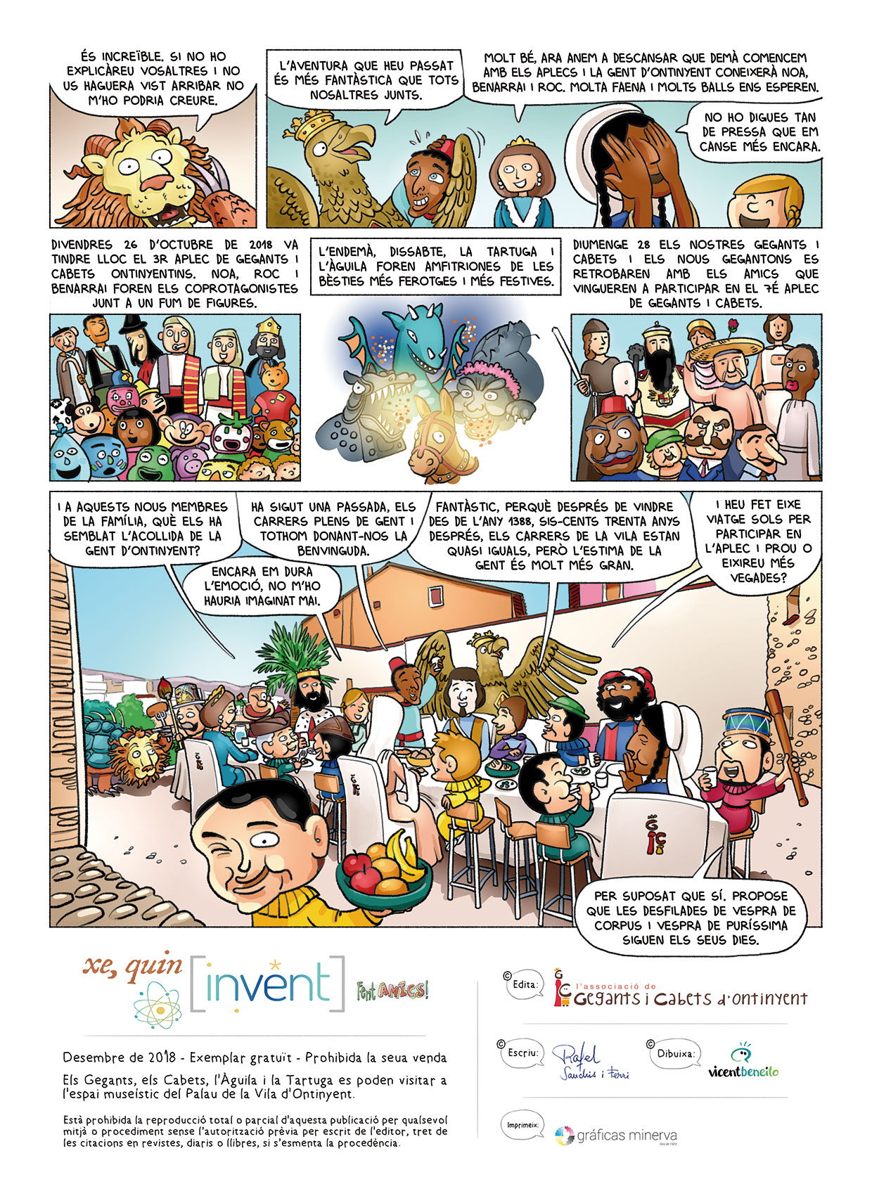 La història i els textos són de Rafel Sanchis i l’edició, a càrrec de l’Associació de Gegants i Cabets d’Ontinyent. El còmic, com és habitual, s’ha repartit entre xiquets i xiquetes d’escoles infantils, educació infantil, primària i educació especial d’Ontinyent.