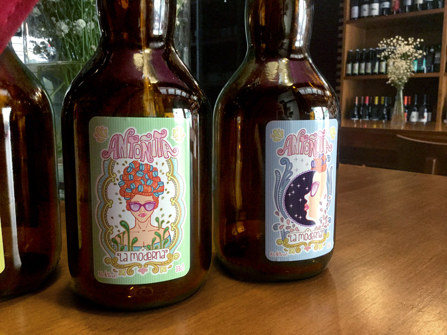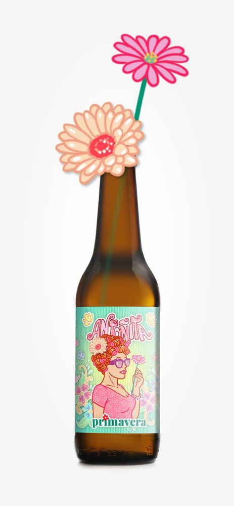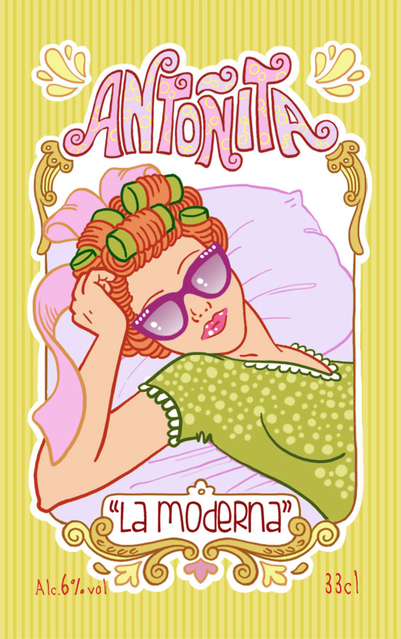Estos són alguns dels dissenys creats per a la cervesa artesanal de la marca «Antoñita La Moderna», l’eix central de la qual és la il·lustració d’una jove mestressa de casa, una miqueta múrria, i amb rul·los en el seus cabells. Cada proposta gràfica combina atractiu visual, estil i creativitat, mentres reflectix la personalitat única i artesanal del producte.