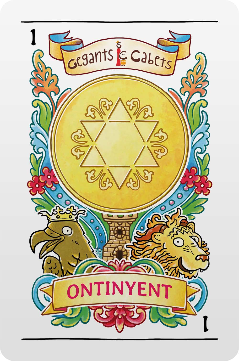 Amb la proximitat del nou Aplec de Gegants i Cabets a Ontinyent, l’associació manté l’entranyable tradició d’entregar un obsequi a tots els alumnes d’escoles infantils, primària i educació especial, fomentant així el contacte dels més xicotets amb la cultura popular i les tradicions locals. En esta sèptima edició, celebrada en 2018, el detall triat ha sigut una baralla de cartes tradicional, combinant diversió i patrimoni. L’he il·lustrada amb les figures de Gegants, Cabets i Bestiari, seguint el model clàssic de les cartes tradicionals i col·locant a cada figura en un paper representatiu.