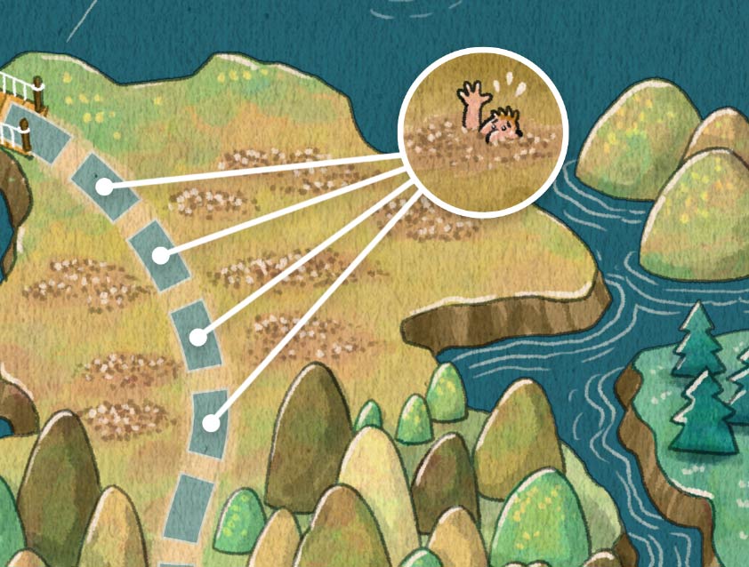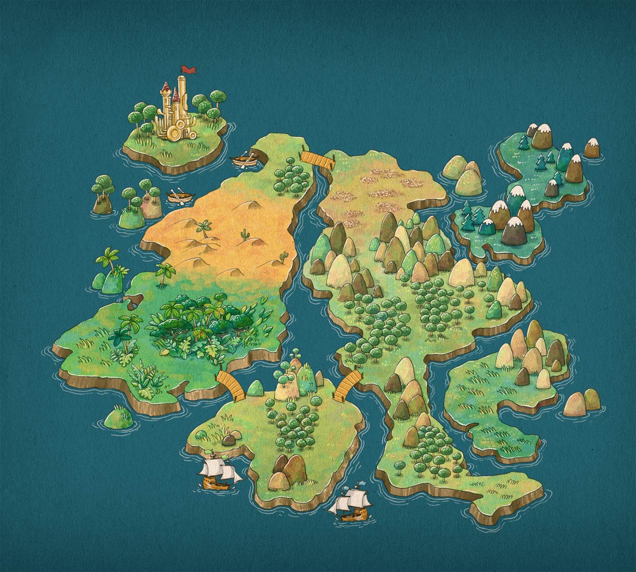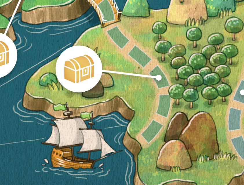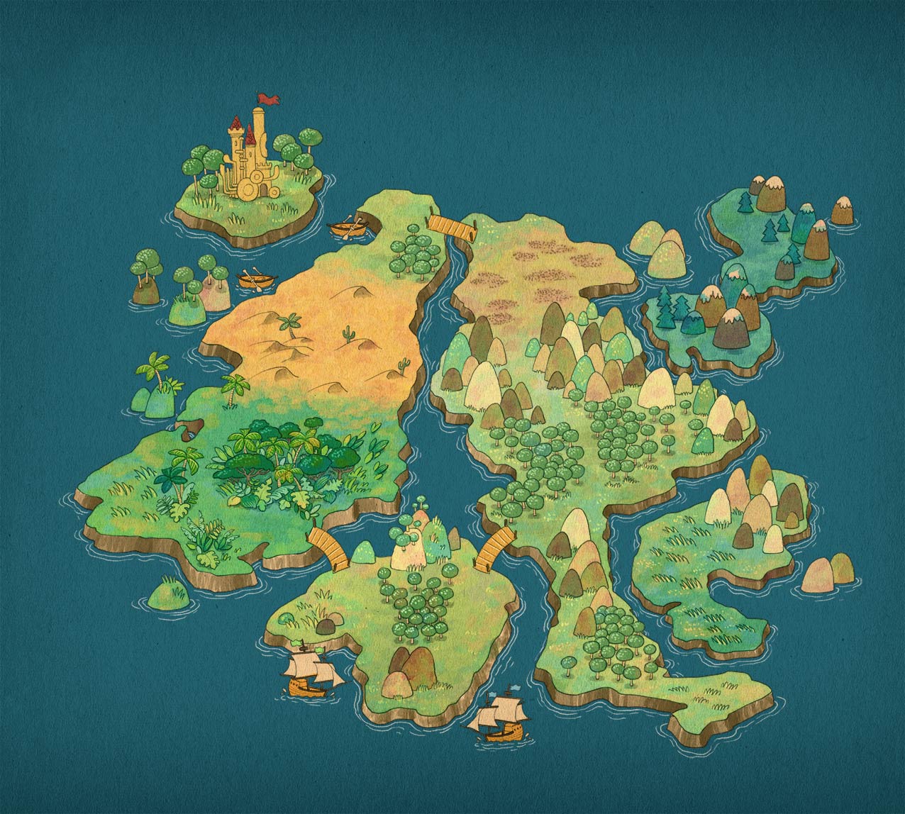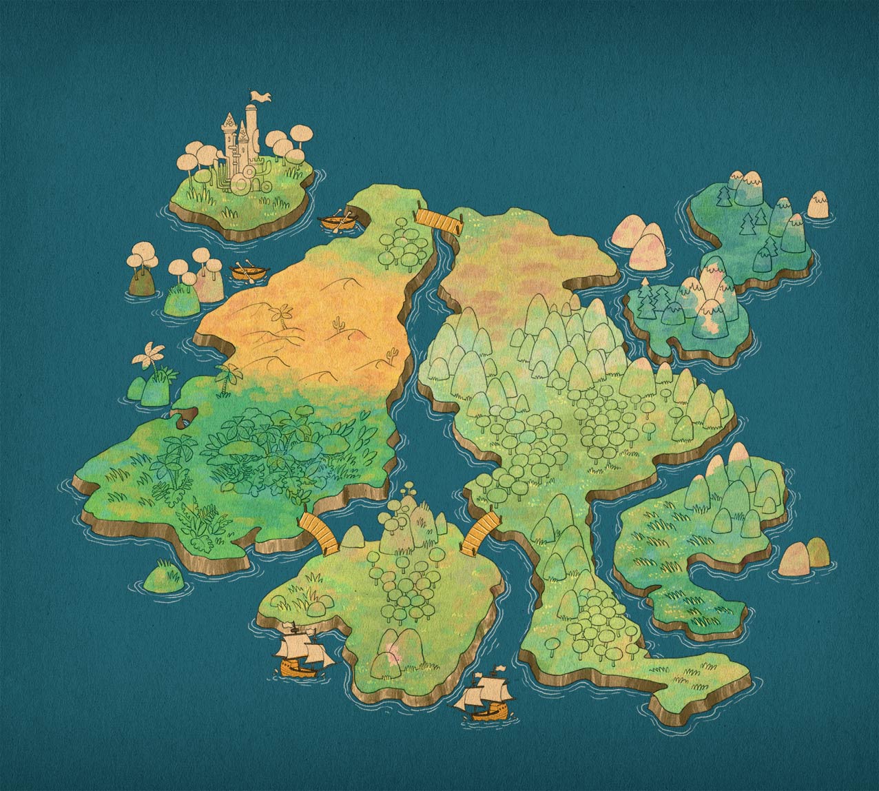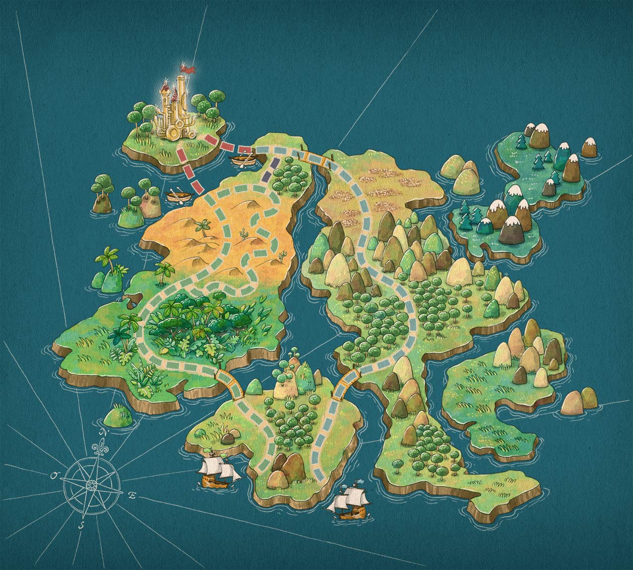 Cada zona del mapa representa un repte diferent, pensat per a motivar als estudiants a superar-se i gaudir de l’aprenentatge de la música mentres col·laboren amb els seus companys d’equip i intenten superar a la resta d’equips. La il·lustració intenta que el joc i la música se senten com una experiència divertida i estimulant.