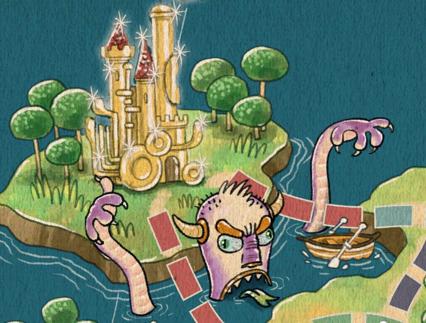 Esta és una il·lustració per a un mapa de joc que acompanya a la 2a Competició de Tècnica per Equips de les classes de flauta del Conservatori Professional de Música Sebastián Durón de Guadalajara. La competició, desenrotllada per la meua germana Carme per a les seues classes, pretén inculcar en els alumnes, valors d’esforç, constància i treball en equip.